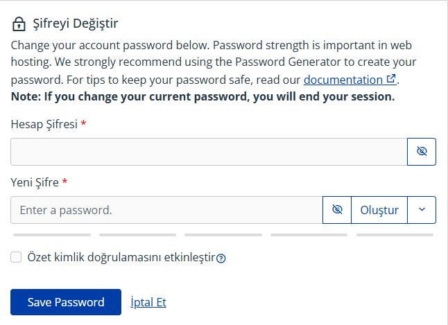 Bu yazımızda cPanel şifresinin nasıl değiştirileceğini resimli olarak anlatacağız.