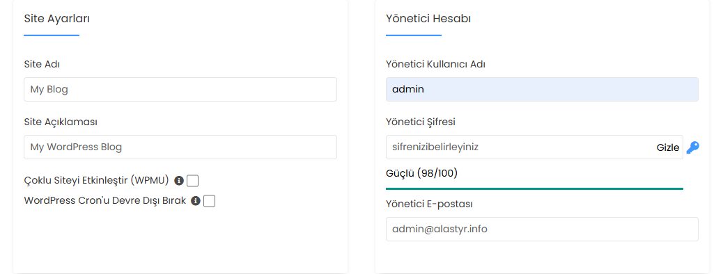 Gereken alanları doldurun ve admin hesap bilgilerini kendinize göre düzenleyin.