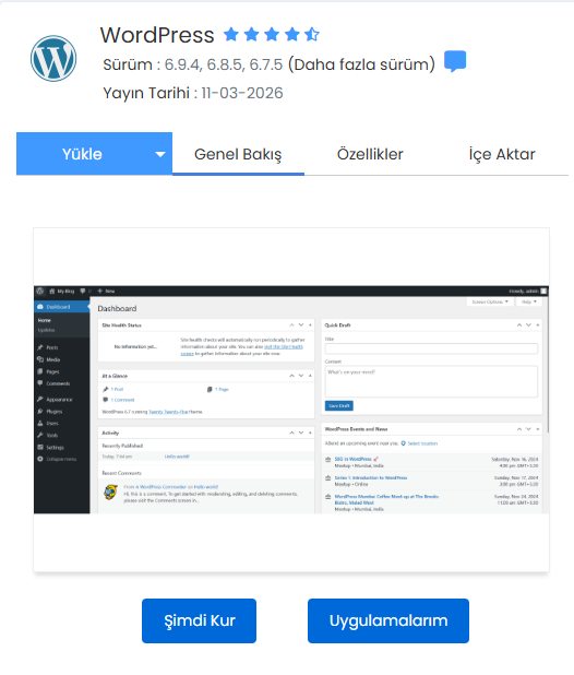 Kurulum tamamlandıktan sonra WordPress admin paneline giriş yaparak sitenizi yönetmeye başlayabilirsiniz.