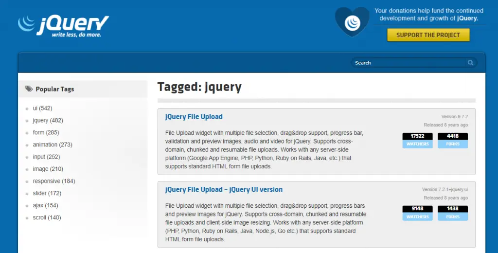 Web yazılımlarında genel olarak bu tarz birimler kullanılır. Küçük boyutlu bir kütüphane olarak bilinen jquery az yer kaplaması ile birlikte uygulamaların yavaşlamasını engellediği için programcılar tarafından tercih edilen bir web yazılım sistemidir. Açık kaynaklı kodlara sahip olduğu için geliştiriciler tarafından yazılan çeşitli eklentilere sahip açık kaynak kodlu birimlerdir.